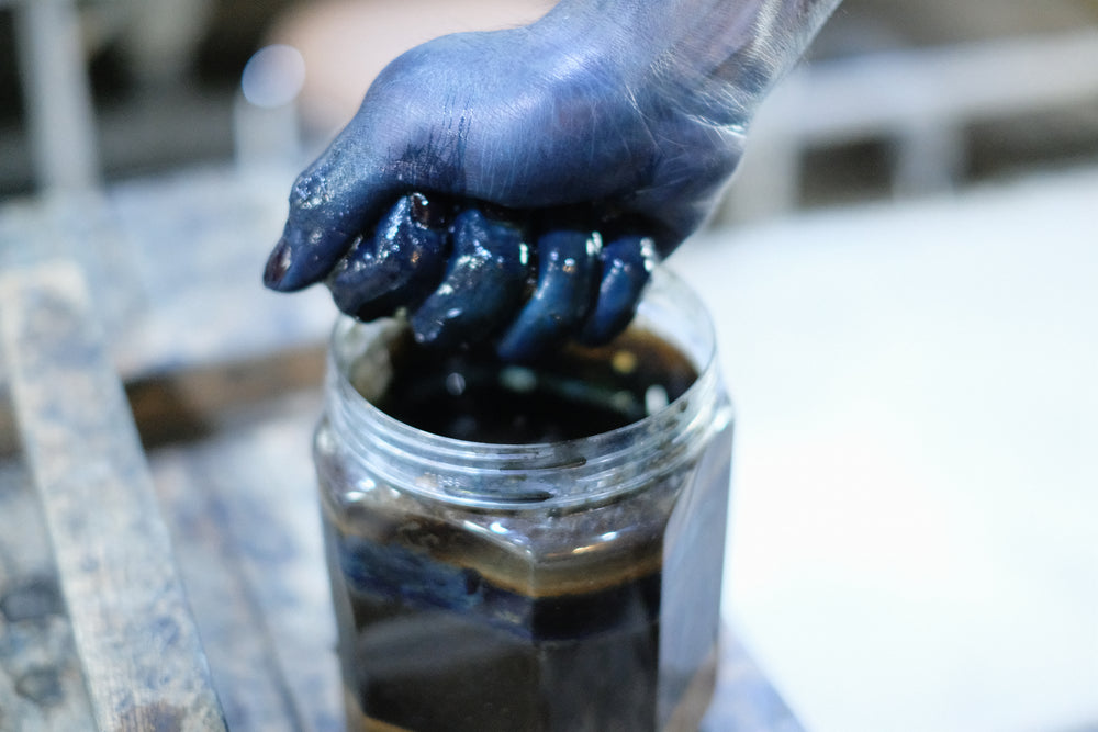 蒅、木灰汁、貝灰、麩という天然材料を原料とし、仕込みから約2週間かけて発酵を促しながら、徐々に濃度を上げていきます。